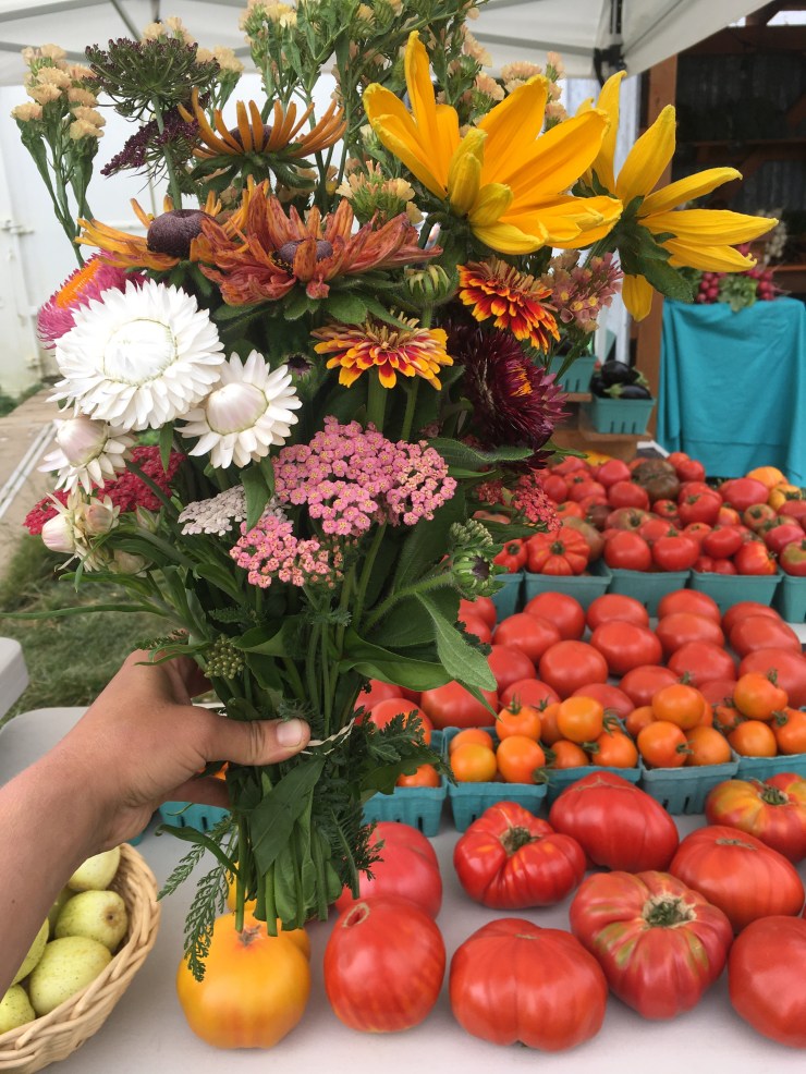 We grow a wide variety of high quality produce, including our famous salad mix, spinach, head lettuces and other greens, peas, herbs, carrots, beets, radishes, heirloom and specialty tomatoes, sweet peppers, cucumbers, and so much more! Additionally, we carry cookies and croutons from local Water Tank Bakery and select meat cuts from North 40 farms and Well Fed Farm.