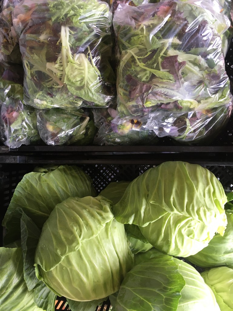 October, November, December: Most of the veggies from June-September, salad mix, spinach, braising mix, daikon radishes, shallots, onions, winter squash, radicchio, endive, escarole, fennel, garlic